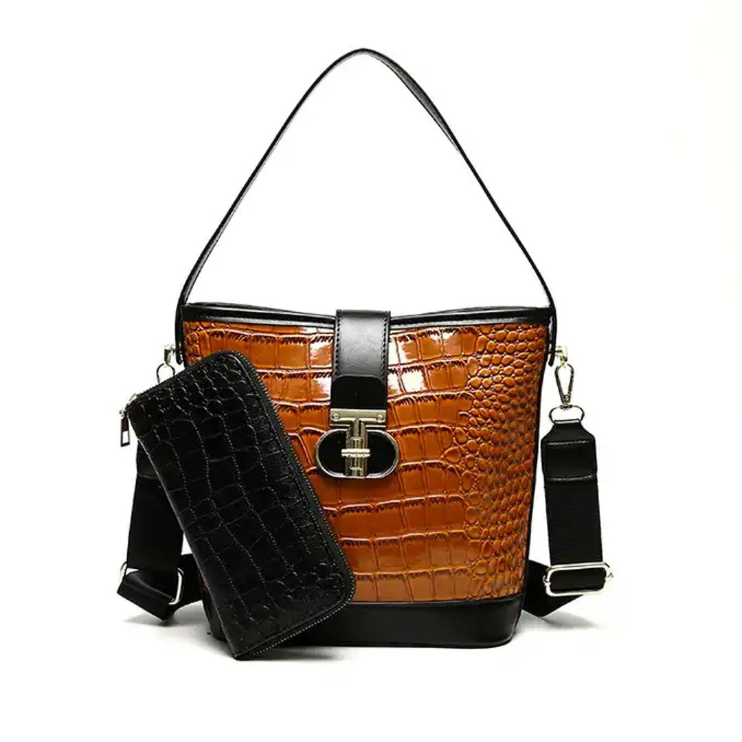 "Get ready to make a statement with our French Texture And Chic Crocodile Pattern Bucket Satchel! The perfect blend of sophistication and quirkiness, this satchel is sure to turn heads. The French texture adds a touch of elegance while the chic crocodile pattern adds a playful twist. Perfect for any fashion-forward individual!"