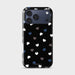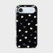 Quietly romantic, endlessly wearable. Heartbeat Noir scatters petite hearts in white, charcoal, and deep navy across a jet-black backdrop—like confetti under city lights. The pattern is small and evenly spaced, so it reads minimal from a distance and sweet up close.