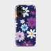 Carry a little midnight magic. Indigo Wildflowers scatters hand-drawn daisies, asters, and garden poppies across a deep navy backdrop—creamy whites, periwinkle blues, and rich violets blooming like stars after dusk.