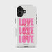 The "Love is All We Need" phone case features a bold and vibrant design, combining playful typography with a soft, pastel color palette. The phrase, prominently displayed in eye-catching pink, serves as a simple but powerful reminder that love is the key to everything we need in life.