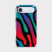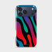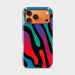 This phone case design captures the essence of a surreal, dreamlike desert mirage—bold waves of molten color crashing together in a hypnotic dance. With vivid gradients of red, teal, purple, and orange weaving through deep black stripes, Meltdown Mirage feels like a psychedelic zebra print melting under a neon sun.