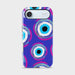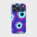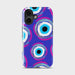 Good vibes, bold style. Neon Nazar reimagines the classic evil-eye motif with concentric rings of cobalt, turquoise, white, and jet black—framed by hot-magenta brushstrokes—on a saturated royal-blue backdrop.