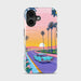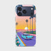 Cruise into the golden hour with this vibrant phone case that captures the magic of a retro road trip. Featuring a classic car cruising down a pastel-colored highway lined with tall palm trees and a glowing sunset, this design brings warmth, nostalgia, and a splash of adventure to your everyday carry.